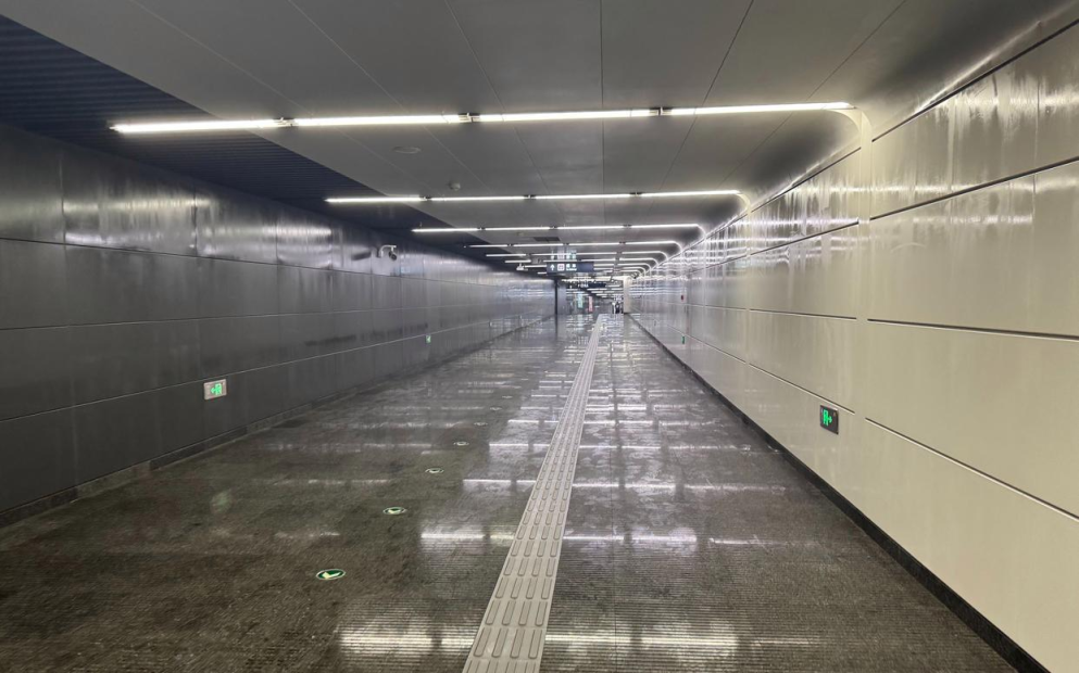北京地铁步行通道的墙壁上凝结出水珠。图片来自微博网友。